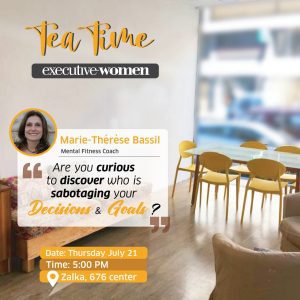 Join us on Thursday 21st of July at 5:00 PM, for a Tea Time Gathering Session, with Marie-Therese Bassil covering a very special topic: Are you curious to discover who is sabotaging your decisions and goals?